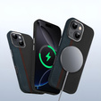 Θήκη για iPhone 13, ανθρακονήματα MagSafe, μαύρο / μπλε είναι μια θήκη από ανθεκτικό πλαστικό και μεταλλικό πλαίσιο που παρέχει εξαιρετική προστασία από την καθημερινή φθορά. Ο κομψός σχεδιασμός προσθέτει μια κομψή και μοντέρνα πινελιά, και παρά τη στιβαρή κατασκευή της, η θήκη δεν αυξάνει το μέγεθος του smartphone. η θήκη περιλαμβάνει μια μεγάλη εγκοπή κάμερας και ευαίσθητα καλύμματα κουμπιών για εύκολη πρόσβαση σε όλες τις λειτουργίες. Ένα ελαφρώς υπερυψωμένο πλαίσιο γύρω από την κάμερα και την οθόνη προστατεύει από γρατζουνιές, ανυψώνοντας το τηλέφωνο πάνω από την επιφάνεια στην οποία στηρίζεται.