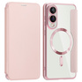 Θήκη με πτερύγιο για Samsung Galaxy S25 Edge, RFID Wallet MagSafe CamShield, ροζ είναι κατασκευασμένη από οικολογικό δέρμα και TPU, παρέχοντας ολοκληρωμένη προστασία από γρατζουνιές και πτώσεις. Διαθέτει άνοιγμα για το μπροστινό ηχείο που σας επιτρέπει να πραγματοποιείτε κλήσεις ενώ η θήκη είναι κλειστή. Υπάρχει ενσωματωμένη τσέπη για κάρτες ή έγγραφα, ώστε να τα έχετε πάντα πρόχειρα. Η υποδοχή κάρτας είναι εξοπλισμένη με τεχνολογία αποκλεισμού ανάγνωσης RFID, ώστε οι κάρτες πληρωμών σας να προστατεύονται αποτελεσματικά από την κλοπή χρημάτων. Η θήκη διαθέτει ενσωματωμένο μαγνήτη, συμβατό με τα αξεσουάρ MagSafe, ώστε να μπορείτε να φορτίζετε το τηλέφωνό σας μέσα στη θήκη χρησιμοποιώντας τον φορτιστή MagSafe χωρίς προβλήματα.