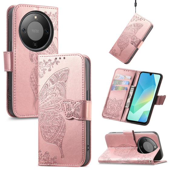 - 1 × Θήκη με καπάκι για Honor Magic 8 Lite, Butterfly, ροζ